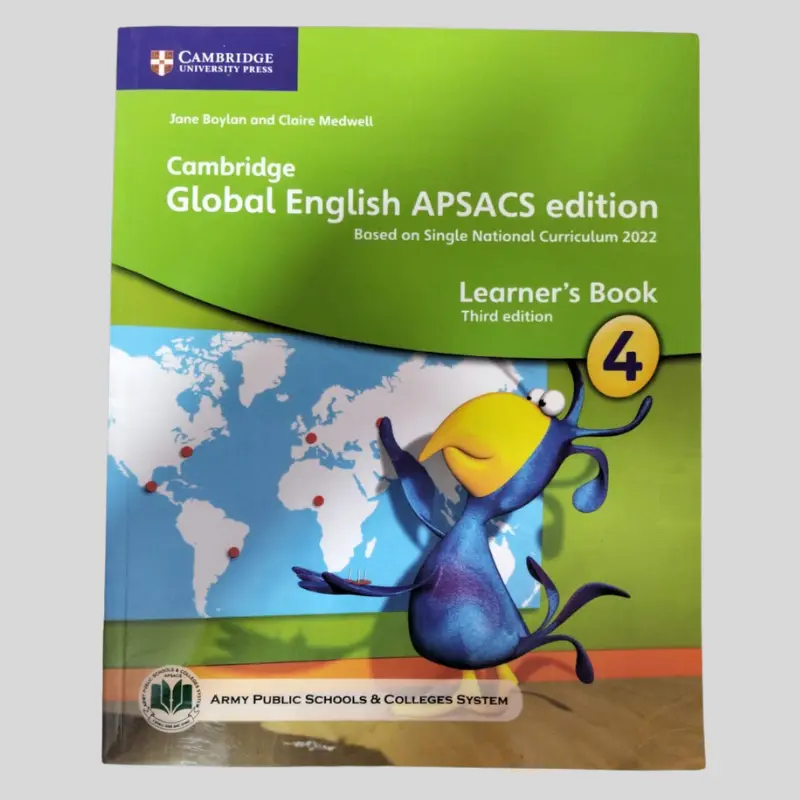 The Cambridge Global English APSACS Edition Activity Book 4 helps people learn English through fun activities. Based on SNC 2022, this is great for APSACS students.
